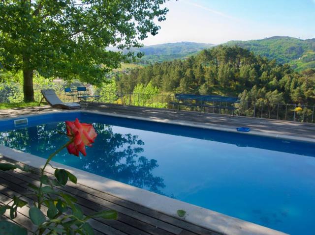 Dispõe de uma piscina exterior rodeada por jardins verdejantes.