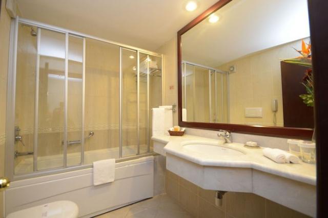 Casa de banho, Duche, Banheira, Secador, Telefone com ligação directa, Televisão, Rádio, Stereo, Acesso à Internet, Mini-bar, Cafeteira / Chaleira, Cama de casal, Cama kingsize, Pisos alcatifados, Ar condicionado central, Aquecimento central, Cofre, Varanda, Terraço, Adaptado para pessoas com deficiência motora, Casa de banho adaptada para pessoas com deficiência motora