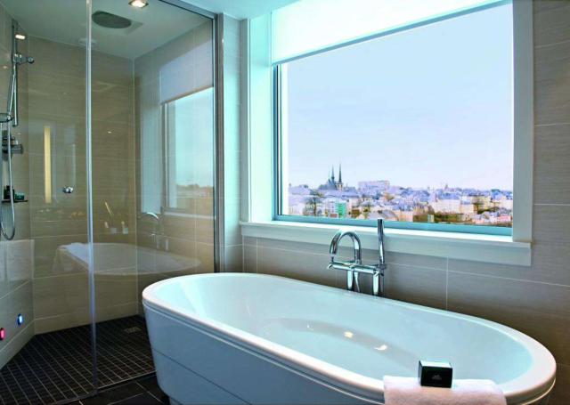 O Sofitel Luxembourg Le Grand Ducal, com vistas para o Pétrusse Valley e centro histórico da cidade.