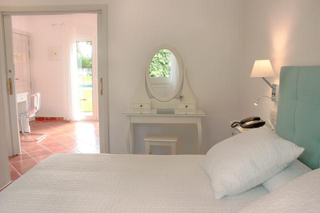 Os confortáveis quartos dispõem de casa de banho privativa completa com duche/banheira e secador de cabelo, bem como de cama de casal, acesso à Internet, televisão via satélite com comando à distância, telefone e mini-bar. Contam ainda com cofre, ar condicionado/aquecimento regulados individualmente e oferecem acesso directo aos bonitos jardins e um terraço. Os quartos contam adicionalmente com sistema de ventilação permanente que renova constantemente o ar para um ambiente mais puro e saudável.