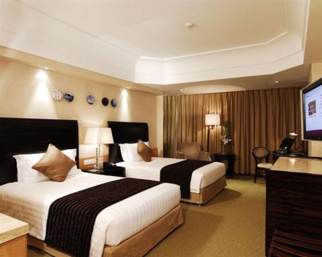 Casa de banho, Duche, Banheira, Secador, Televisão, Acesso à Internet, Mini-bar, Cafeteira / Chaleira, Conjunto para engomar, Cama de casal, Cama kingsize, Pisos alcatifados, Ar condicionado central, Cofre, Sala de estar, Quartos para fumadores