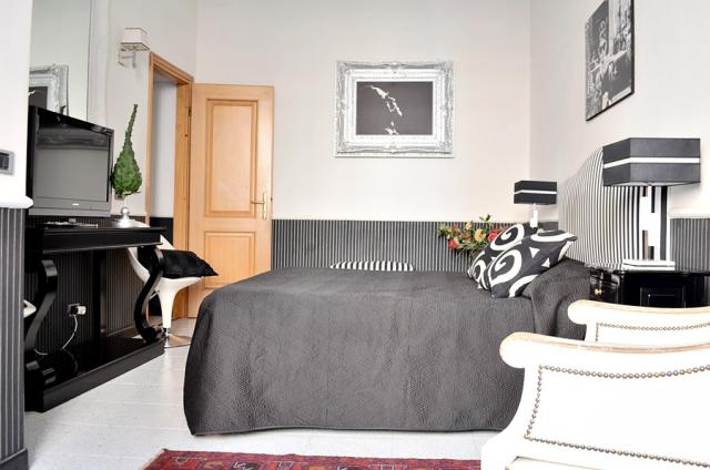 Each has a black and white décor and comes with fine bed linen and towels.